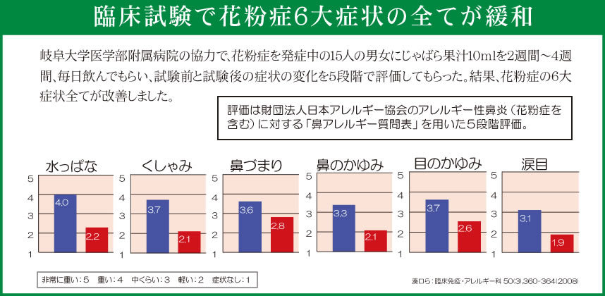 日本じゃばら普及協会によると、かなりの改善が臨床試験やモニター結果で確認されているようです。
