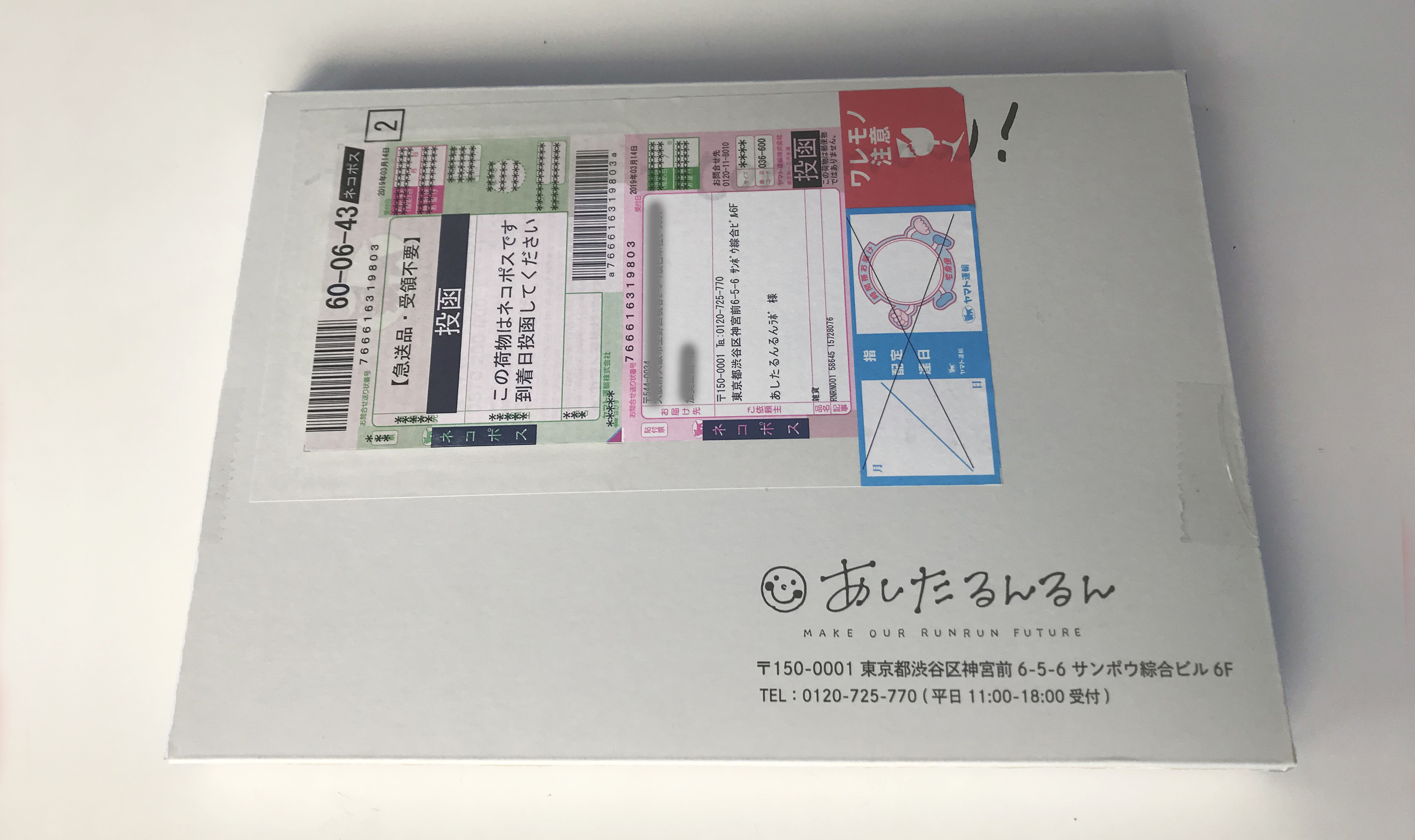 メール便でポストに届きます。